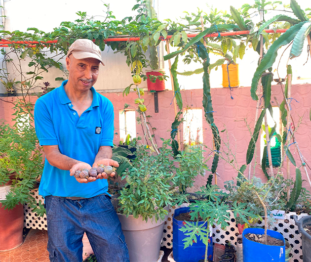 كما شدد على أهمية إدخال الفواكه الاستوائية في تجربة الزراعة المنزلية، مشيرا إلى أنه يزرع فاكهة التنين المعروفة بـ”الدراجون فروت”، وفاكهة العاطفة التي يطلق عليها “الباشن فروت”، فضلا عن أشجار قزمية من الليمون والبابايا.